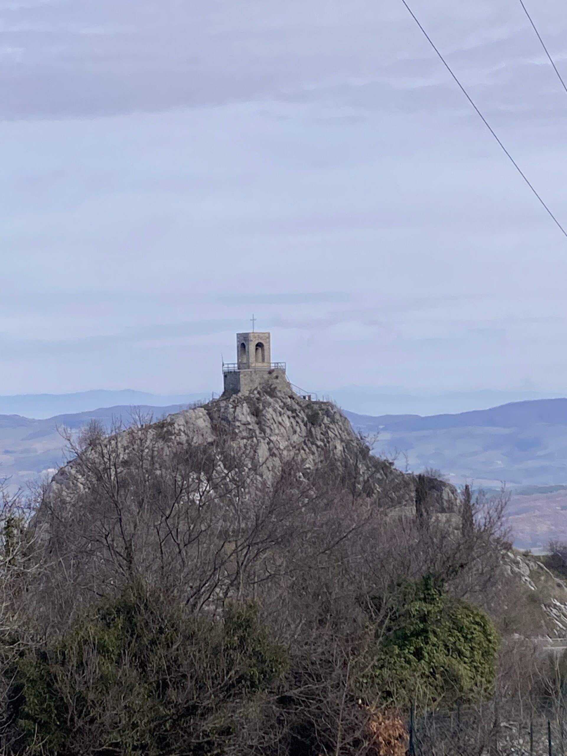 Siamo partiti dal borgo di Campiglia, salendo verso la torre che sovrasta il paese, è stato possibile visitarla, l’abbiamo oltrepassata salendo ancora, per un sentiero, verso i ruderi di un’altra fortificazione. È la parte più impegnativa della salita, ma, relativamente breve. Abbiamo continuato a salire su una carrareccia, a tratti, rovinata dal passaggio di mezzi agricoli, in cui spesso ristagna acqua e fango. In questo tratto, però, la salita è più dolce.